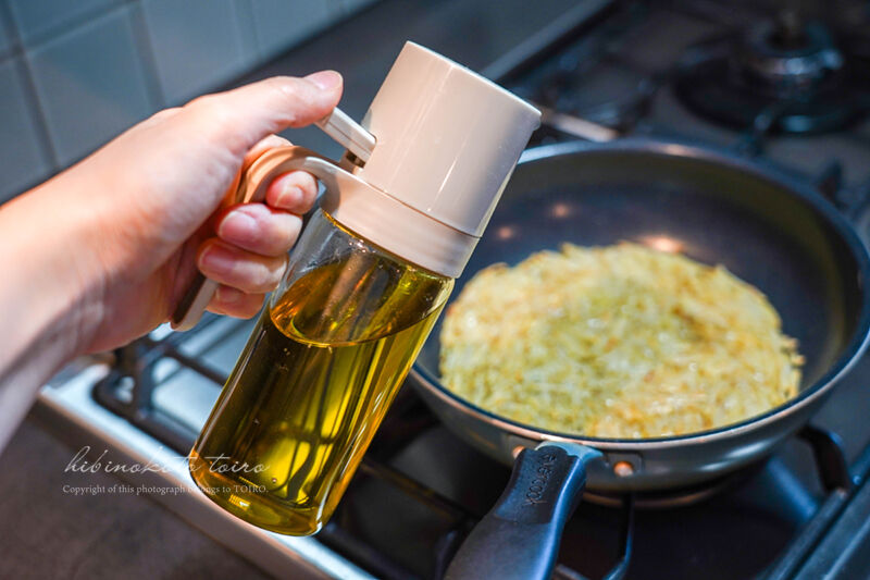 オイルスプレーだと、無駄にたくさんオイルを使わずに済むので、すごくいいですよ〜!!