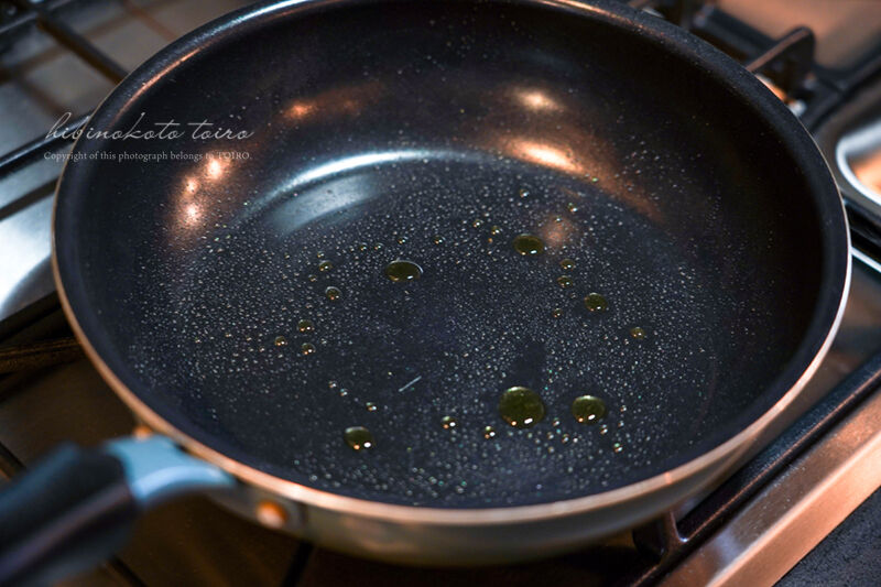 20cmのフライパンにオリーブオイルを薄く敷いて、