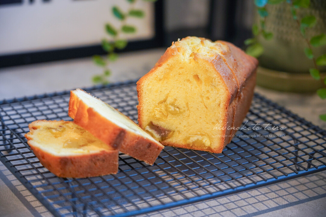 早速、出来上がった甘露煮を使って、栗のラムバターケーキを焼きました。