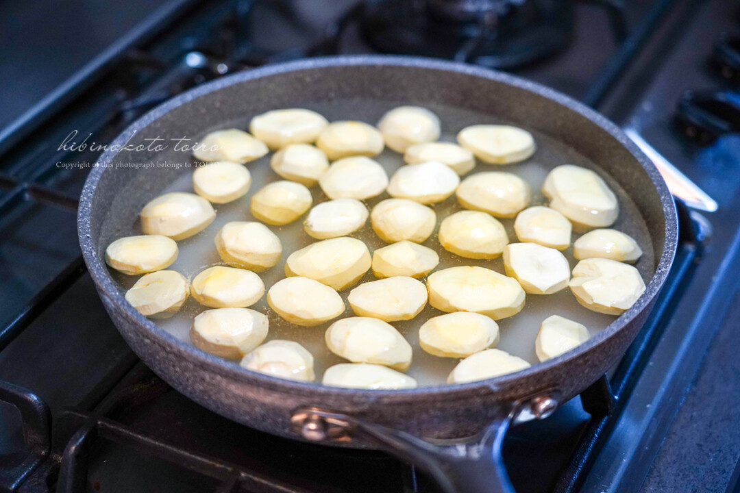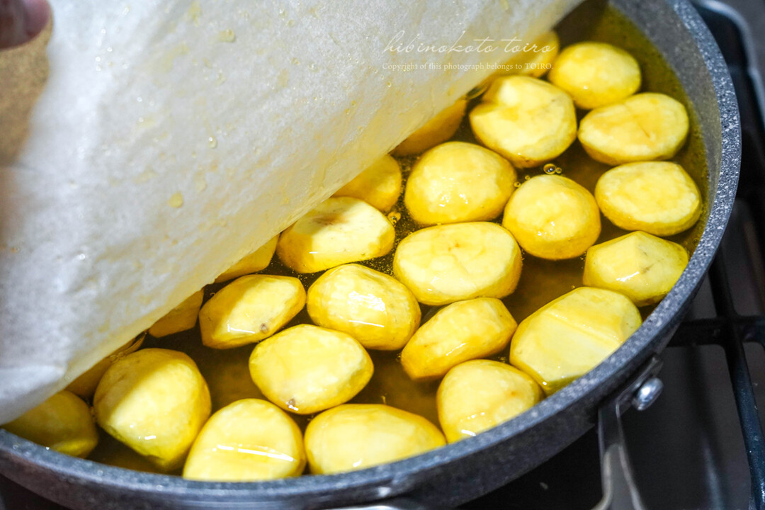 クッキングシートやオーブンシートで落とし蓋を作って煮ていきます^^