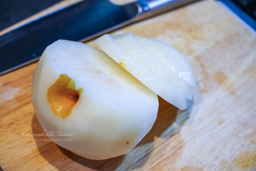 梨の、あのシャクシャクという食感が少し残ってるんです。