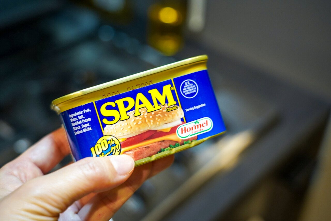 スパムは薄切りにして焼いて、卵焼きも焼いて(卵が3個しかなかったからでっかく焼けなかった)