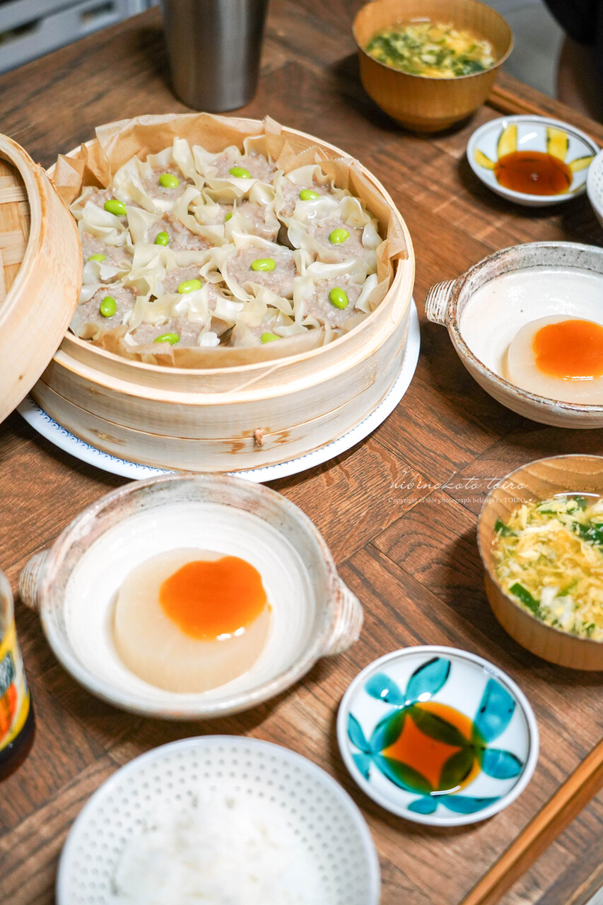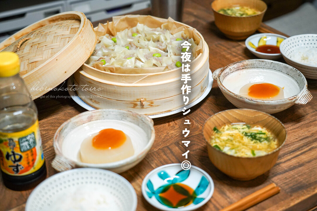 今夜はシュウマイ、蒸したて熱々をいただきまーーーすっっ!!
