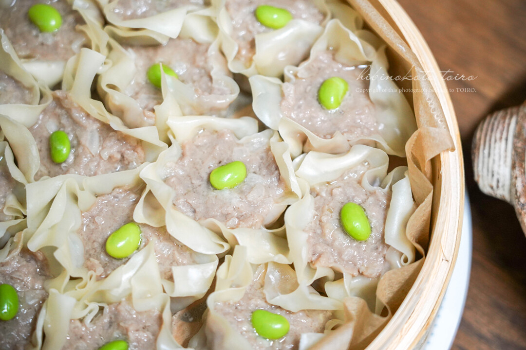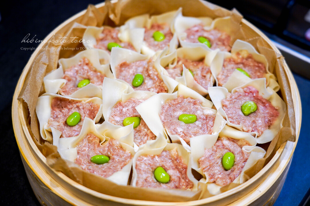 ④蒸し器にクッキングシートを敷いて、焼売を並べる。沸騰したら中火にして約10分蒸す。