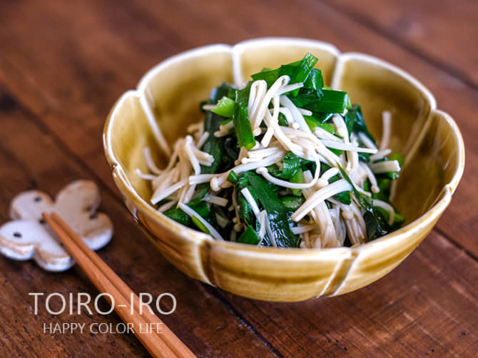 トイロノートの今日のレシピは、パパッとあと一品!ニラとえのきのゴマポン和え!