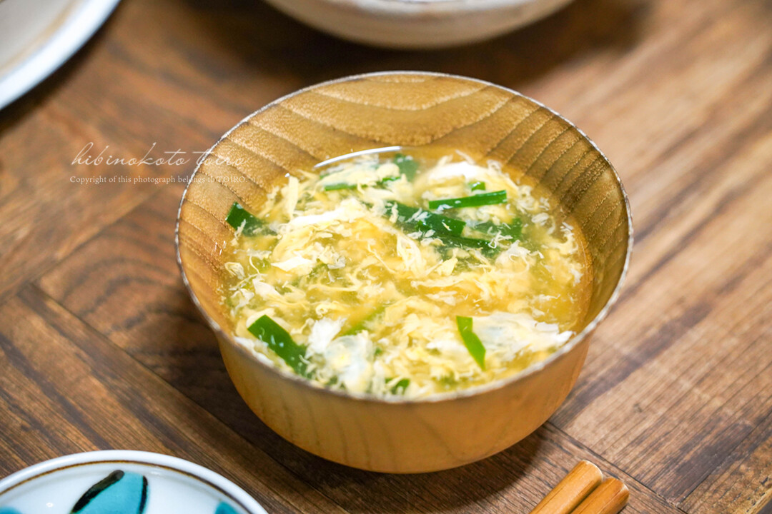 汁ものを作るの、シュウマイでパワー使い果たして諦めかけたんだけど、そんなときにいつも作ってるこのスープにしました。