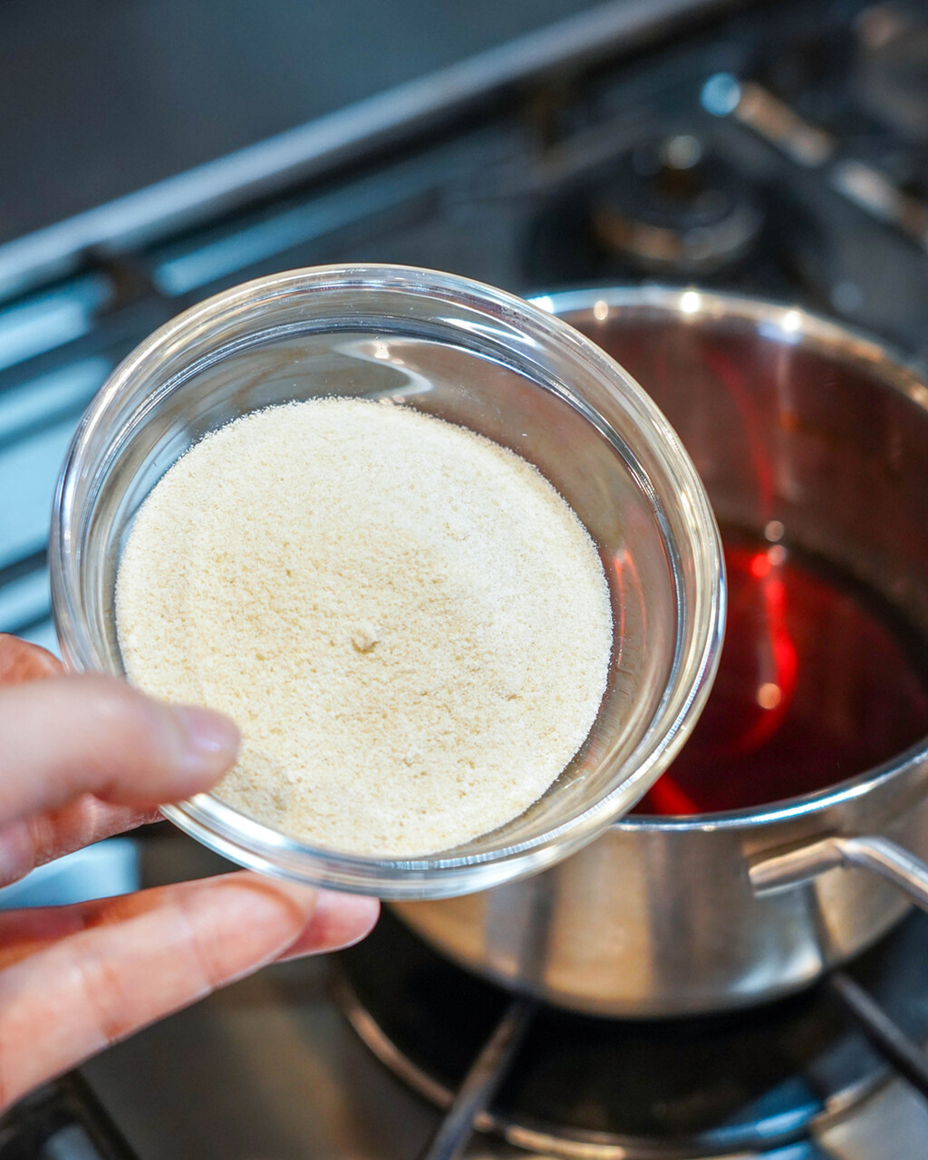 ④ 砂糖を加えてよく溶かし、粗熱を取る。