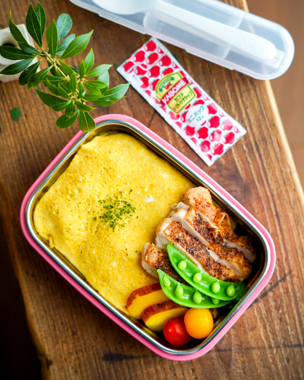 今日はケチャップライスだから、わっぱ弁当箱は使わず電子レンジが使えるステンレス弁当箱に詰めました。