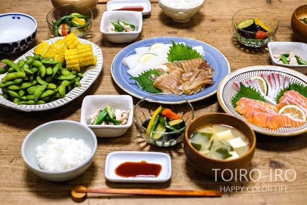 今夜はお刺身定食 今日の晩ごはんです。昼間、市場やスーパーを3件ハシゴして色々食材の買い物をしてきました。夏らしい野菜をたっぷりゲットー!!他にもあるんだけど、もうざるに乗らなかった(笑)先日夫が釣ってきたイカをおすそ分けしてくれたので、今日はお刺身がメインディッシュです ... 2018/07/04 続きを読む
