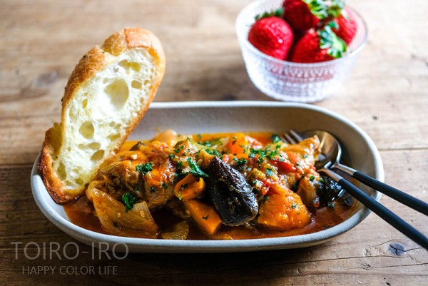 野菜がたっぷりの朝ごはん。 大きな鍋いっぱいにチキンと野菜のトマト煮込みを作りました。冷蔵庫の半端野菜処分を兼ねて^^まずは、ニンニクのみじん切りをオリーブオイルで炒めて、玉ねぎを加えます。透き通ってくるまでね。そこに鶏肉を加えます。冷凍庫にあった、ドラムスティックを使ってしまいた ... 2020/03/26 続きを読む